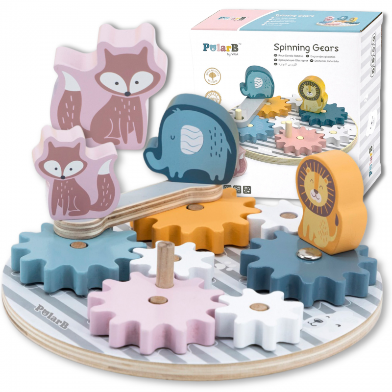 VIGA PolarB Drewniane Koła Zębate ze zwierzątkami to idealny wybór na prezent dla każdego dziecka, które chce rozwijać swoje umiejętności przez zabawę i naukę.