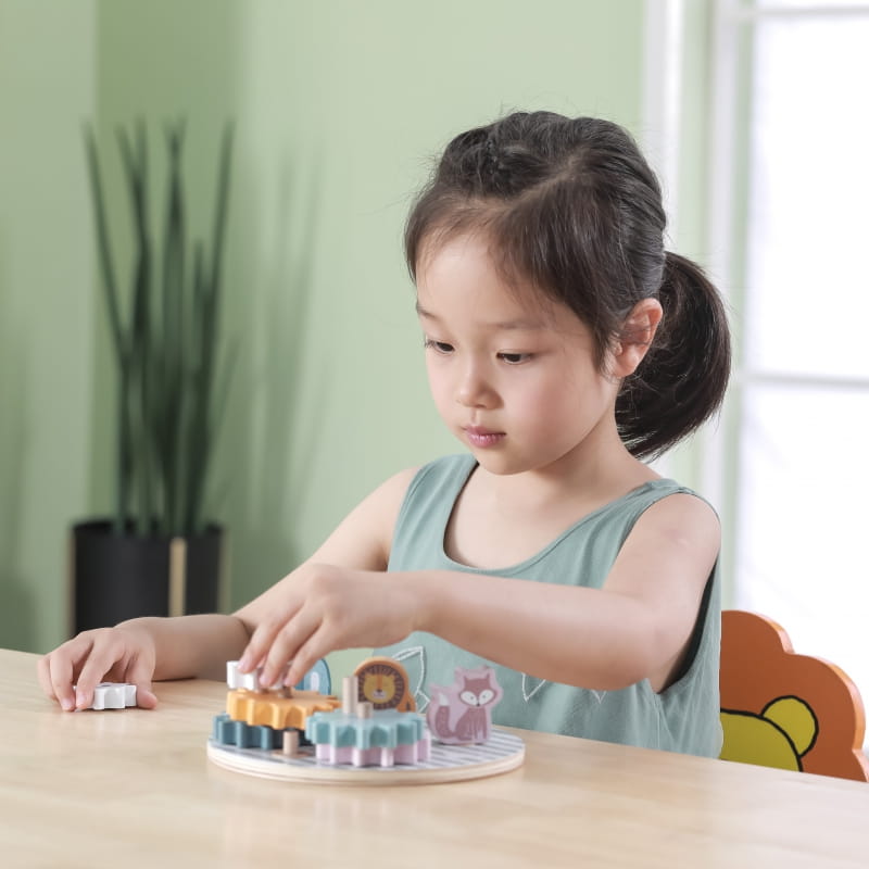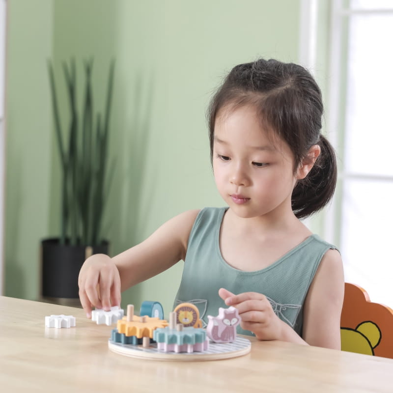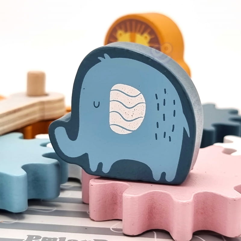 Drewniane Koła Zębate ze zwierzątkami - Mechaniczna układanka